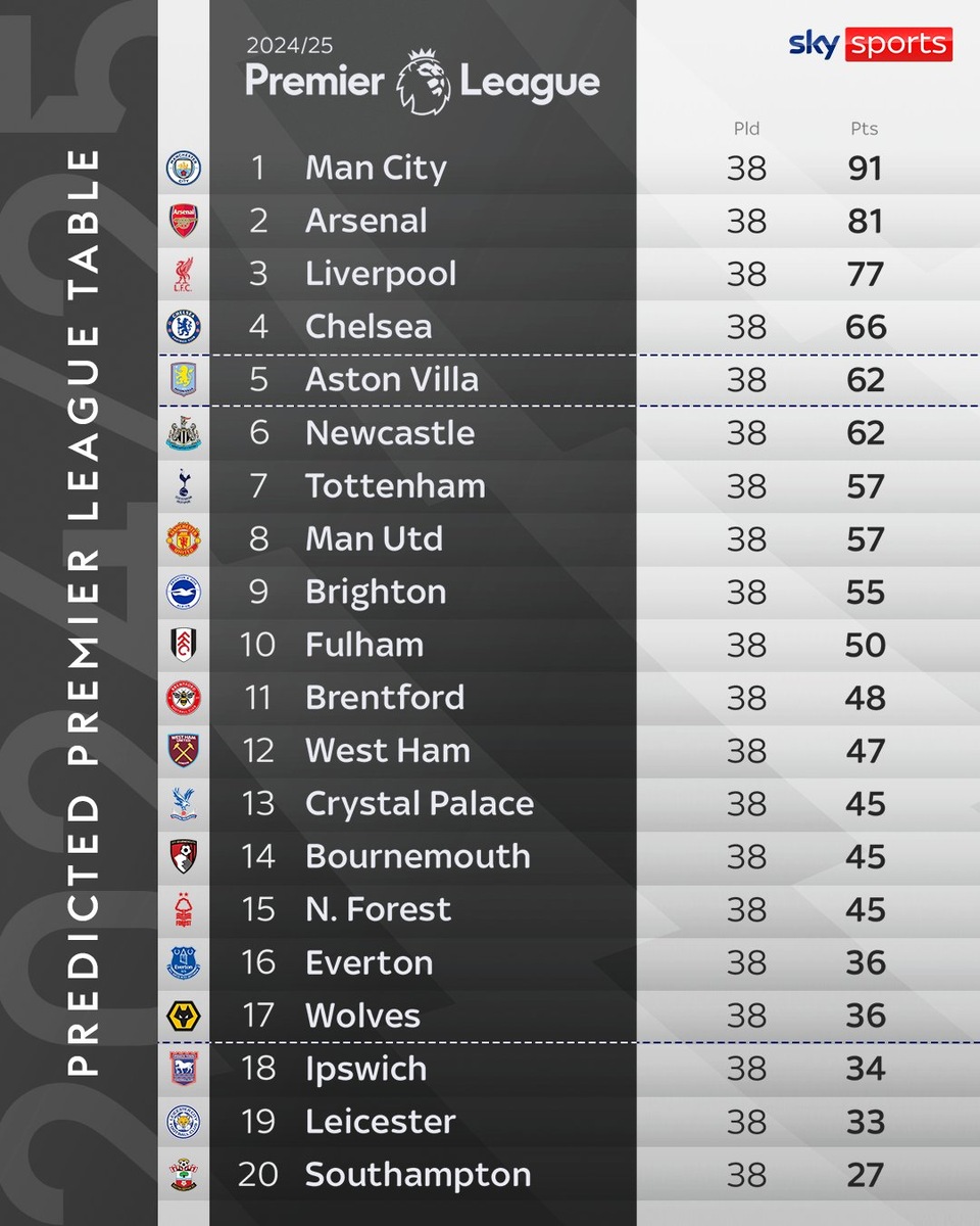 Второй снова «Арсенал». А третьим, как ожидается, будет «Ливерпуль». Замыкает топ-4 «Челси».