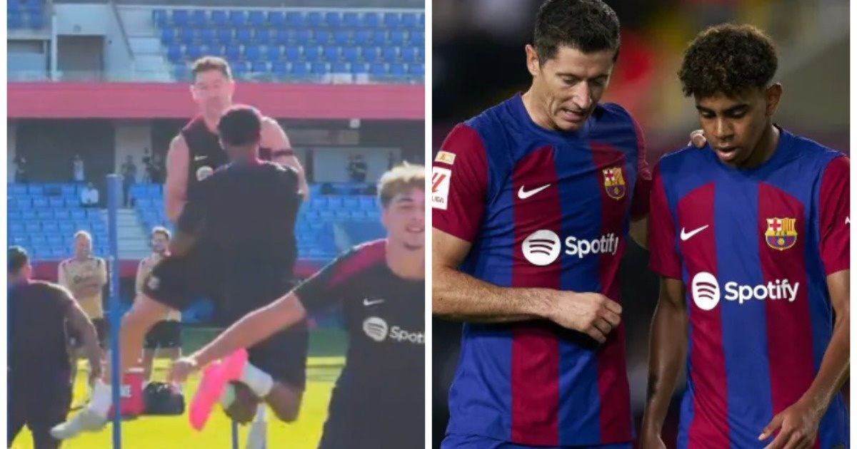 Главный тренер «Барселоны» Ханси Флик тот еще шутник. На последней командной тренировке в одном из упражнений немец поставил молодого вундеркинда Ламина Ямаля против Роберта Левандовского.