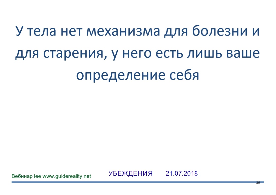 У тела нет механизма для болезни и старения, у него есть лишь ваше определение себя