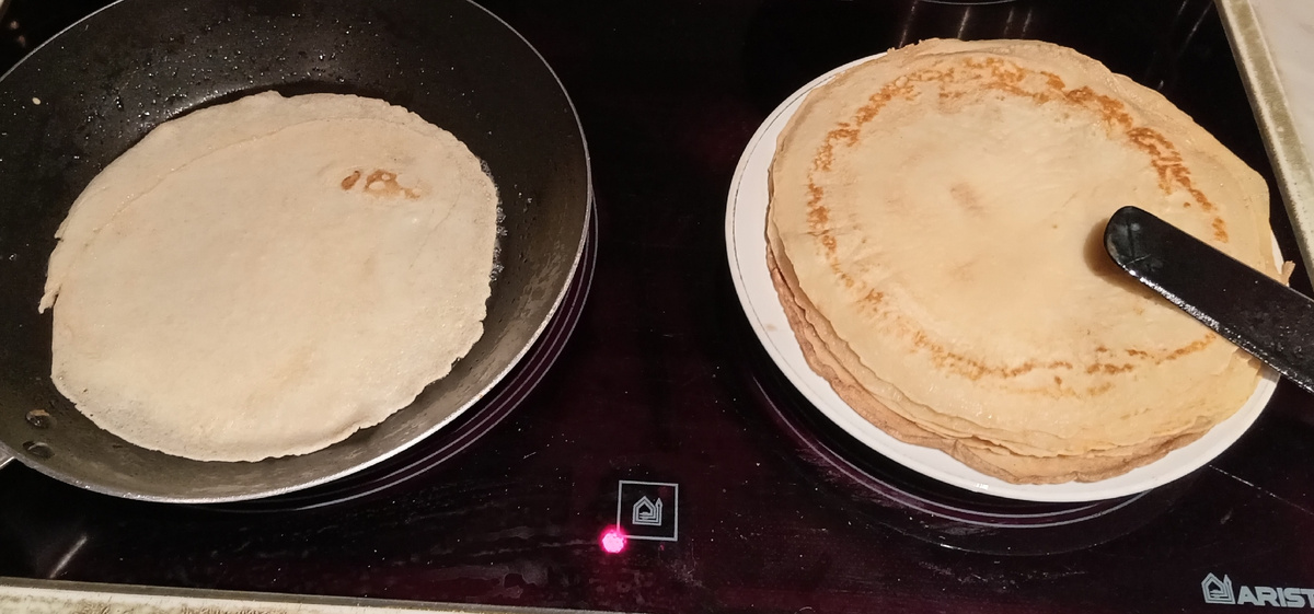 Редко ем, но очень захотелось и чтоб с ванильной творожной массой 🤪 Я долго думала, дня 3 наверное заказать или самой сделать. По цене тоже самое, но вот гемора явно больше с домашними. Ещё у меня проблем с глазомером, вообще это не моё и те кто пишет щепотку и на глазок идите в апельсинку! 🍑 Я отношусь к людям, которые строго по рецепту беру стакан 200 мл, а не стакан, какой у меня есть от 100 мл до 800 мл. Вы о людях подумайте, не все такие как вы. В целом я на глазок как было велено начала сыпать муку. Сыпала и сыпала, поняла, что мой маленький бдендер это уже не размешает, котелок до верху, а ещё надо сыпать! Отлила в стакан 400 мл и продолжила играть в игру под названием "до состояния жидкой сметаны". Кулинары у меня обычное молоко из пакета уже в состояние жидкой сметаны, куда там ещё муку добавлять то? Первый горшок был идеальный, вкусный, в меру жидкий и как надо, хотя не тоненькие как принято в классическом рецепте. Потом по 2 кругу я опять начала играть в досыпь муку. По