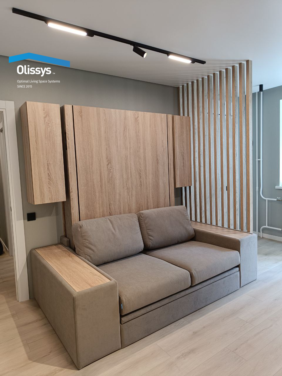 При этом мы предлагаем нашим заказчикам приобрести фирменный матрас Olissys, который уже разработан с учетом особенностей эксплуатации модуля-трансформера. Однако вы можете использовать и свой матрас. Достаточно соблюсти все рекомендации перед покупкой 👌 Подробную инструкцию мы выдадим.