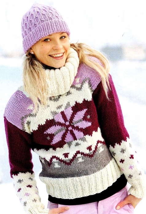 Резинка 2x2: вяжите попеременно 2 лиц. п. и 2 изн. п. Жаккарды: Внимание! При вывязывании рисунка при вертикальной смене цветов перекрещивайте нити