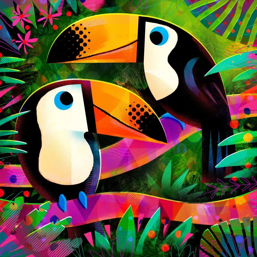 Наступает осень, время грусти по ушедшему лету. Вечерами становится холодно, а погреться можно яркими сочными летними красками английского художника. Я вот очень люблю такие «наивные» изображения птиц, в которых, несмотря на стилизацию, легко угадать конкретный вид. Гарет Лукас — иллюстратор и дизайнер, живущий в своем родном городе в графстве Эссекс, Англия, с женой и пятью детьми. После учебы в Брайтонской школе искусств и Центральной школе искусств Святого Мартина он работал над различными проектами, в центре которых был мир природы. Очаровательный стиль Гарета сочетает в себе влияние народного искусства и цифровые технологии. Все рисунки выполняются с помощью Photoshop, Illustrator или Procreate. А еще одна страсть Гарета — музыка, он играет на гитаре, банджо, мандолине и укулеле.