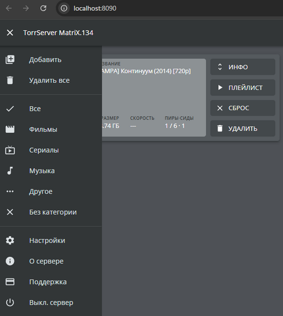 Всё готово. Значок программы появляется в трее. Торрент файл или магнет - ссылку можно добавить в браузере, перейдя по ссылке на сервер