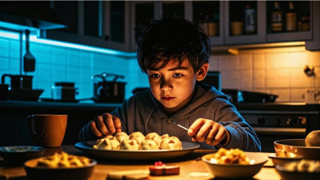 — Не волнуйся, сынок. Сегодня это новый рецепт — «пельмени под нежным соусом воспоминаний о вчерашнем обеде».