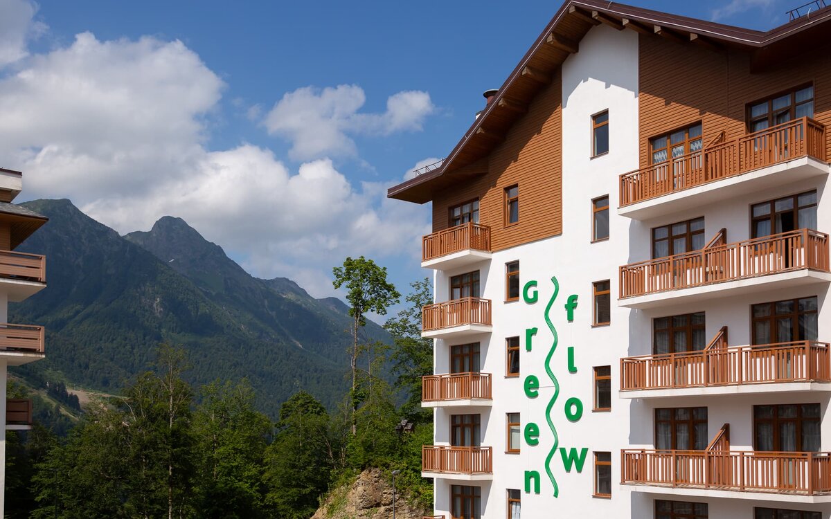 Green Flow Hotel на Роза Хутор — это уникальный эко-отель, предлагающий своим гостям гармоничное сочетание современного комфорта и единения с природой. Отель расположен на одном из самых живописных курортов России, в окружении гор и свежего воздуха, что делает его идеальным местом для оздоровления и восстановления жизненных сил. Green Flow Hotel находится на курорте Роза Хутор, одном из ведущих горнолыжных и всесезонных курортов страны. В любое время года гости отеля могут наслаждаться потрясающими видами Кавказских гор, прогуливаться по живописным тропам и дышать кристально чистым воздухом. Вблизи отеля расположены лыжные трассы, пешие маршруты и множество активностей, что делает его идеальным местом для любителей активного отдыха, будь то катание на лыжах, походы или просто расслабляющие прогулки на свежем воздухе. Green Flow Hotel — это не просто место для отдыха, а пространство, которое поддерживает философию экологичности и здорового образа жизни. Во всех аспектах работы отеля, от