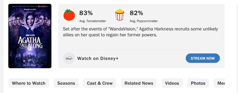 У компании “Дисней” очередная проблема, связанная с их низкокачественными сериалами. А все дело в том, что шоу “Это все Агата” стартовало даже хуже, чем это было с премьерой “Аколита”, хотя в это тяжело поверить. Скорее всего, причиной краха стала рефлексия массового зрителя. После череды плохих сериалов, венцом которых стал тот самый “Аколит”, зрители сильно разочаровались в шоу от "Дисней" и не горят желанием их смотреть. В данном случае речь идет не об оценках со стороны критиков и зрителей — как раз с этим у “Агаты” все отлично! Речь идет о количестве часов просмотра шоу. Первую серию посмотрели на старте 9,3 миллиона раз, в то время как у “Аколита” этот параметр достиг отметки в 11,1 миллиона раз. https://youtu.be/eiO1upgW3Nw