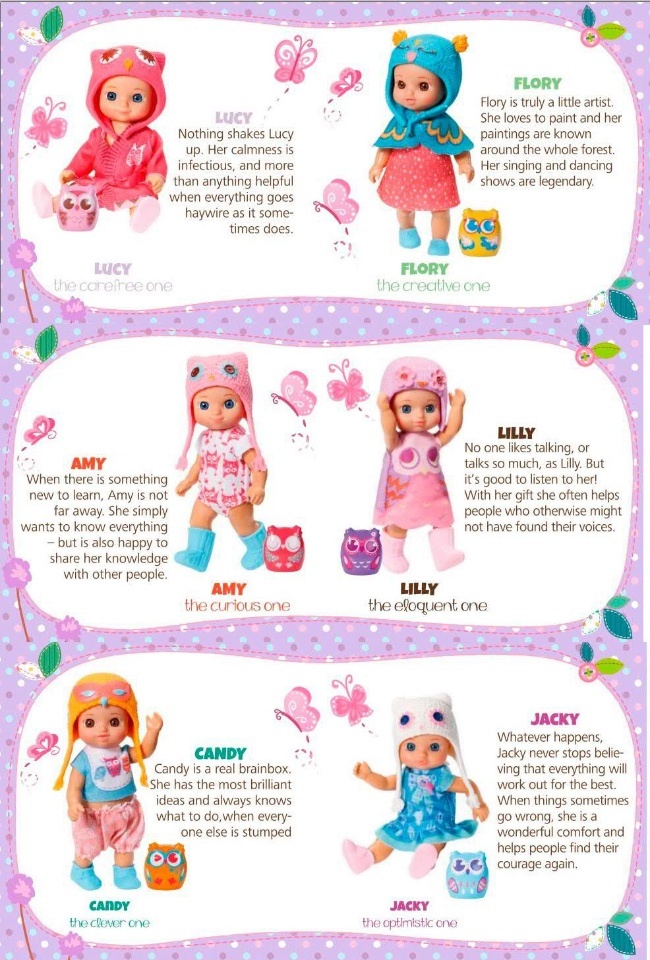 Добро пожаловать на мой канал! Хочу представить небольшой обзор мини куколок Шу-шу (Chou-chou). Рост кукол всего 12 см. Производителем является фирма «Zapf creation», Германия. Качество исполнения кукол на высоте. Глаза - стекло. Также есть номер у каждой куклы на спине. Первая серия или волна — состоит из 6 кукол и 6 питомцев — питомцы совы. У каждой куколки свое имя, молд и аутфит (одежда). LILLY Candy JACKY LUCY FLORY AMY Вторая волна — это куколки, с такими же молдиками, только немного светлее первой волны, но также и другие аутфиты, совы, имена. Знакомьтесь! VICKY CHRISTY HOLLY RUBY SUNNY ELLY И третья волна — это опять те же куколки, с теми же молдами, только вместо их питомцев-сов — питомцы-лисы. А так же новые аутфиты в тематике лисят. JOSY ANNY KIMY KATHY GRACY BEAUTY JUDY LUCKY Ну и конечно же — ДОМИКИ для любимых кукол! А теперь и мои принцессы: Оля, Аня, Вика. Подписывайтесь на канал и ставьте лайки! ...)))
