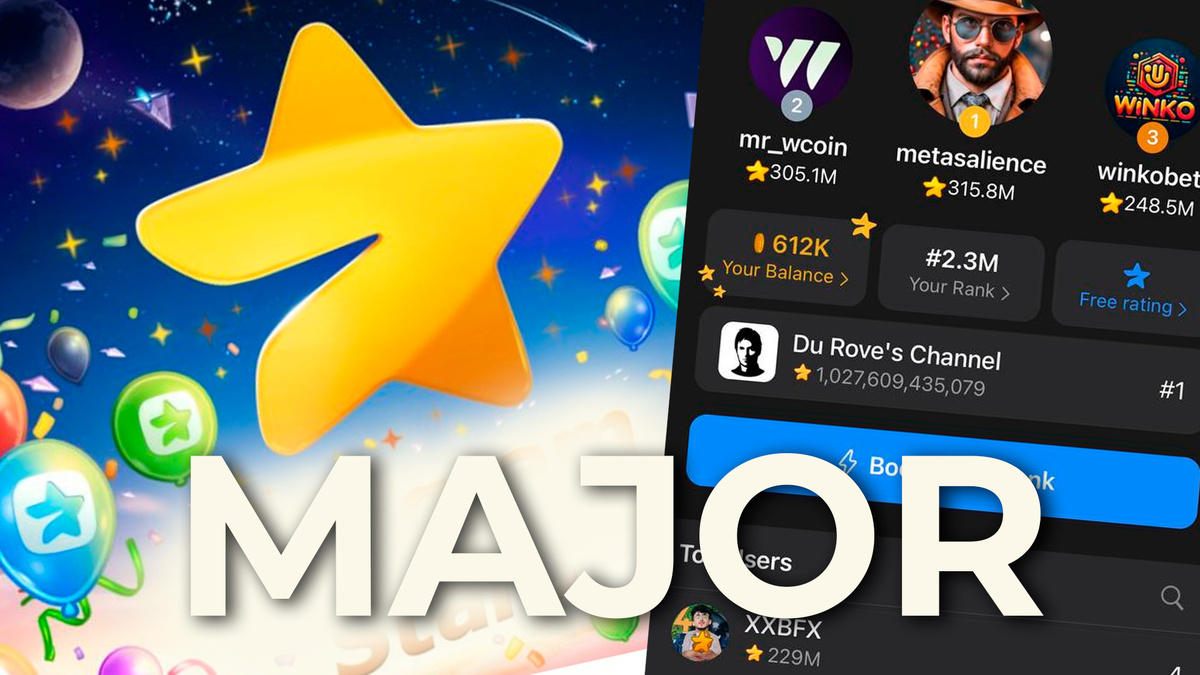 Major – это первая игра с рейтингом в телеграм. Когда видишь её в первый раз, то сразу вспоминаешь отголоски системы рейтинга Вконтакте и голоса. А почему? Потому что команда которая отвечала за игры «Вконтакте» теперь упорно работает над игровой экосистемой в телеграме. Основная цель игры – стать самым крутым в рейтинге среди участников. 👉 Ссылка на игру Многих интересует этот вопрос, а также волнует, как вывести деньги из игры Мажор. Об этом мы узнаем позже, также как и о цене их токена на криптобиржах. Пока мы можем играть в игру без вложений и надеяться на скорейший листинг, чтобы заработать с этой тапалки в Telegram. Как только будет известна информация о дропе и листинге, сразу опубликуем её в нашем Telegram канале, поэтому подпишитесь.