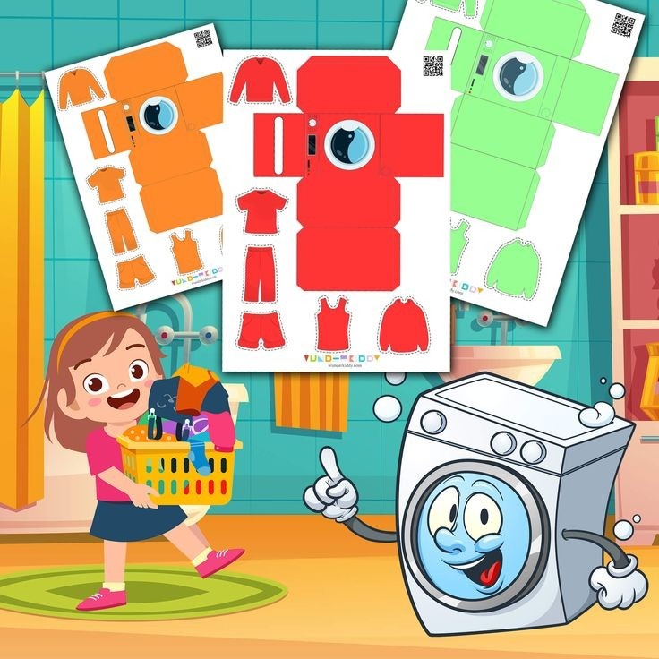 Для этой игры вам нужно будет сделать самим или чем то заменить следующие контейнеры: 1. Стиральная машина. 2. Холодильник. 3. Мусорный бак. 4. Контейнер с игрушками. Все контейнеры нужно разрисовать в подходящий цвет, еще лучше наклеить на них соответствующие наклейки, если имеются. Теперь нужно набрать предметы, вы можете вырезать их из ненужных детских журналов ,например, как это сделала я. Ищем и вырезаем : - футболки, штаны, перчатки, шапки все что найдете и можно постирать в стиральной машинке. - яблоко, тарелки с едой, кастрюли, тыквы, помидоры и т.п. что можно убрать в холодильник. - фантики, бутылки, просто смятые бумажки и т.п. для мусорного бака. - мячики, медведи, машинки, куколки и т.п. для ящика с игрушками. После того как все вырезанно советую заламинировать, иначе ребенок быстро это все порвет и испортит. Теперь можно играть, вы берете все предметы перемешиваете. Сначала лучше показать как играть. Достаете футболку , - это надо в стиральную машину. Достаете кукл