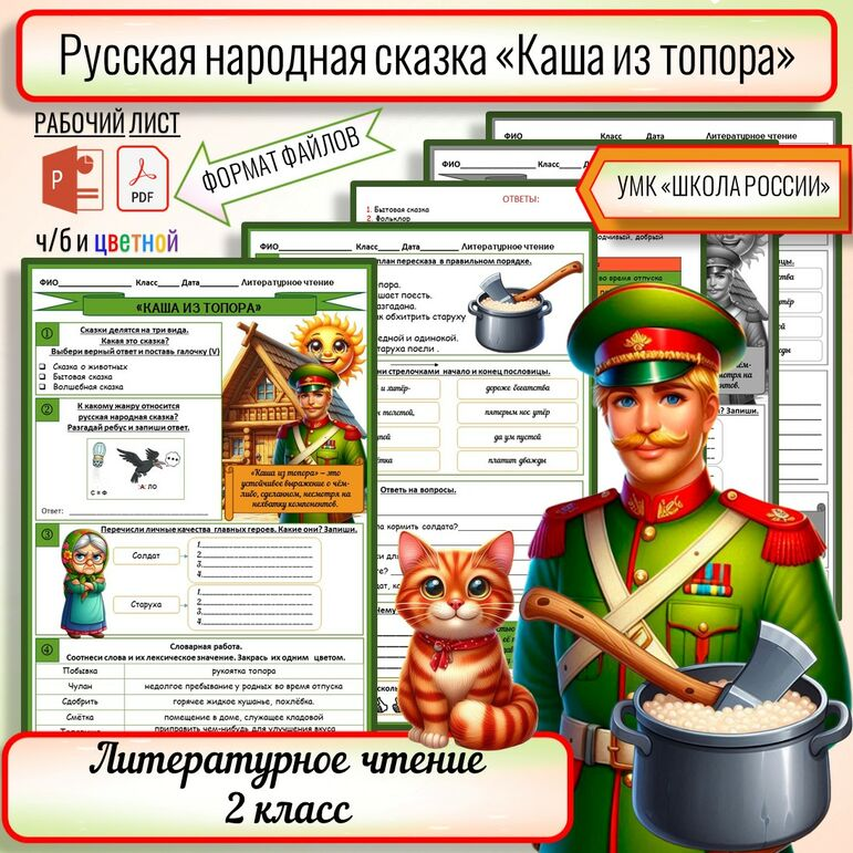 Рабочий лист "Каша из топора" 2 класс Литературное чтение Русская народная сказка ✨с ОТВЕТАМИ для учителя✨МОЖНО РЕДАКТИРОВАТЬ✨ Задания размещены на 2-х листах ( можно использовать двухстороннюю печать для экономии бумаги) ДВА ФАЙЛА ДЛЯ ПЕЧАТИ НА ВАШ ВЫБОР : ЦВЕТНОЙ И ЧЕРНО-БЕЛЫЙ. Формат pdf и формат pptx ( с возможностью редактирования файла) Иллюстрации в высоком разрешении. Рабочий лист состоит из 8- ти заданий , рефлексии+ лист с ОТВЕТАМИ для учителя. Ознакомиться и приобрести можно Здесь #литературное_чтение #2_класс #рабочий_лист #литературноечтение2класс #начальнаяшкола