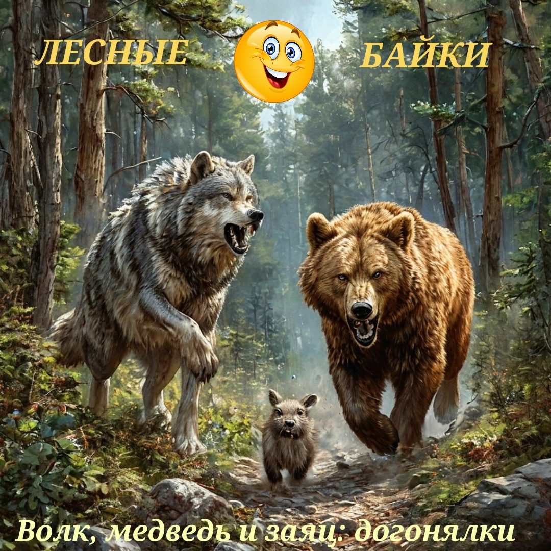 Медведь и заяц: Игра в догонялки с волком Однажды медведь и заяц решили поиграть в догонялки. Заяц убегал от медведя, а медведь догонял зайца. Они бегали по лесу, пока не встретили волка. Волк сказал: "Ребята, давайте играть вместе, я буду догонять зайца, а вы будете убегать от меня". Медведь и заяц согласились, и они начали бегать по лесу втроем. Но когда волк начал догонять зайца, медведь решил помочь ему. Он подбежал к волку и ударил его лапой. Волк упал на землю и сказал: "Спасибо, медведь, ты мне очень помог!". Тогда заяц подбежал к нему и сказал: "Теперь мы можем убежать от тебя, потому что ты больше не можешь нас догонять!". И они убежали.