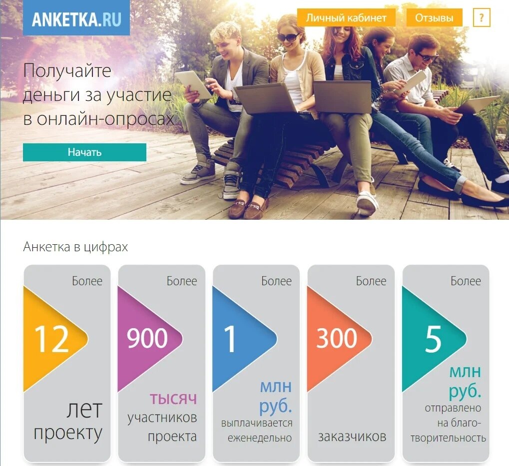 Хотите подзаработать немного денег? Я предлагаю лучший и рабочий вариант! Вы получаете деньги просто за прохождении опросов, в среднем за один 30-70 рублей. Их приходит около 2-4 штук в день, в зависимости как вы заполните профиль о себе. Возраст, пол и т.д. не помеха! Для вас всегда найдутся опросы. Вывод средств от 1000 рублей как на банковскую карту, вы можете накопить другую валюту этого проекта и обменять на подарки, также вы можете жертвовать деньги в различные благотворительные фонды. При регистрации вы получите 30 рублей и до 50 рублей за заполнение профиля, а ещё вы можете приглашать друзей и получать за каждого зарегестрированого друга 30 рублей. Этот сайт очень надёжный! Ваши данные строго защищает сайт, все ответы в опросах тоже строго защищены и вывод заработаных денег безопасен. Лично пользуюсь этим заработком довольно продолжительное время. Я рекомендую этот сайт всё легально,без обмана и безопасно!
