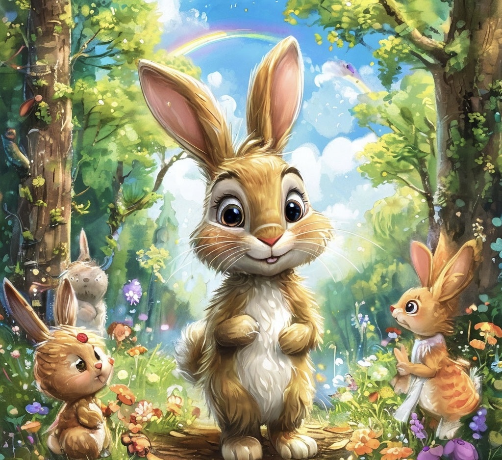 В одном волшебном лесу жил-был Забавный Зайчонок по имени Тимка. Он был очень любопытным и всегда искал приключения. Однажды, гуляя по лесу, он увидел яркую радугу, которая сверкала на небе. — Как же красиво! — воскликнул Тимка. — Мне нужно узнать, где заканчивается радуга! Тимка решил отправиться в путешествие. По пути он встретил своих друзей: Мишку, который всегда был насторожен, и Уточку, которая любила плескаться в воде. — Куда ты идёшь, Тимка? — спросила Уточка. — Я иду к радуге! — радостно ответил зайчонок. — Я с тобой! — сказала Уточка. — Я тоже! — добавил Мишка, хотя он немного боялся. Так трое друзей отправились в путь. Они преодолели множество преград: перепрыгнули через ручей, пробежали по мягкому мху и даже перешли через небольшую гору. Наконец, они пришли к месту, где радуга касалась земли. Там стоял волшебный сундук, покрытый яркими цветами. — О, что же внутри? — спросил Тимка, сияя от любопытства. Когда они открыли сундук, там оказались не золото и драгоценно