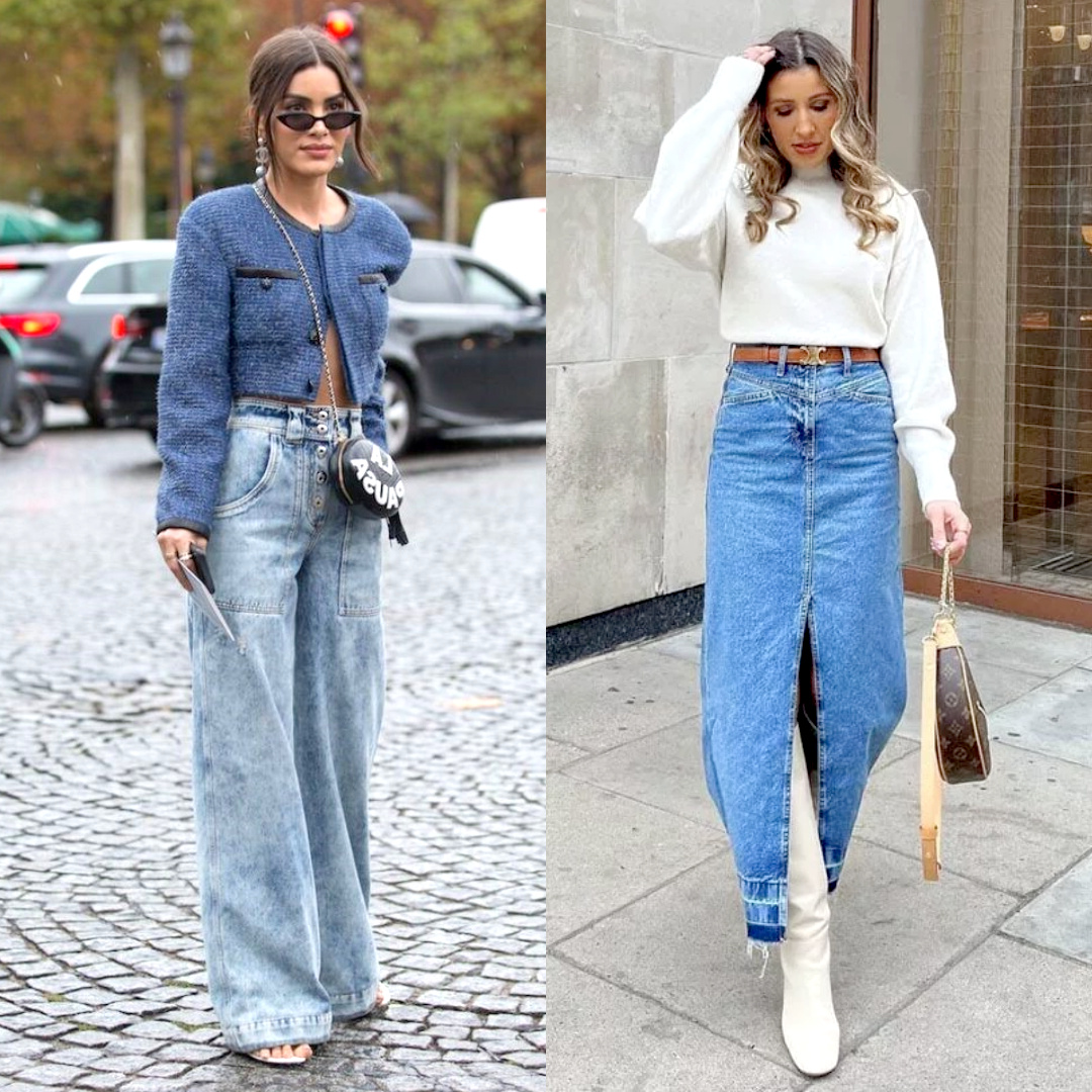 Деним является неотъемлемым атрибутом каждодневных образов. Джинс уже давно стал считаться частью базового гардероба. Это могут быть как джинсы, так и удлиненные юбки. Для того чтобы девушкам было комфортно передвигаться и ничего не стесняло движения, стилисты советуют выбирать модели с разрезами. Дополнить такой вид можно кожаной обувью, сумкой, пиджаком либо курткой.