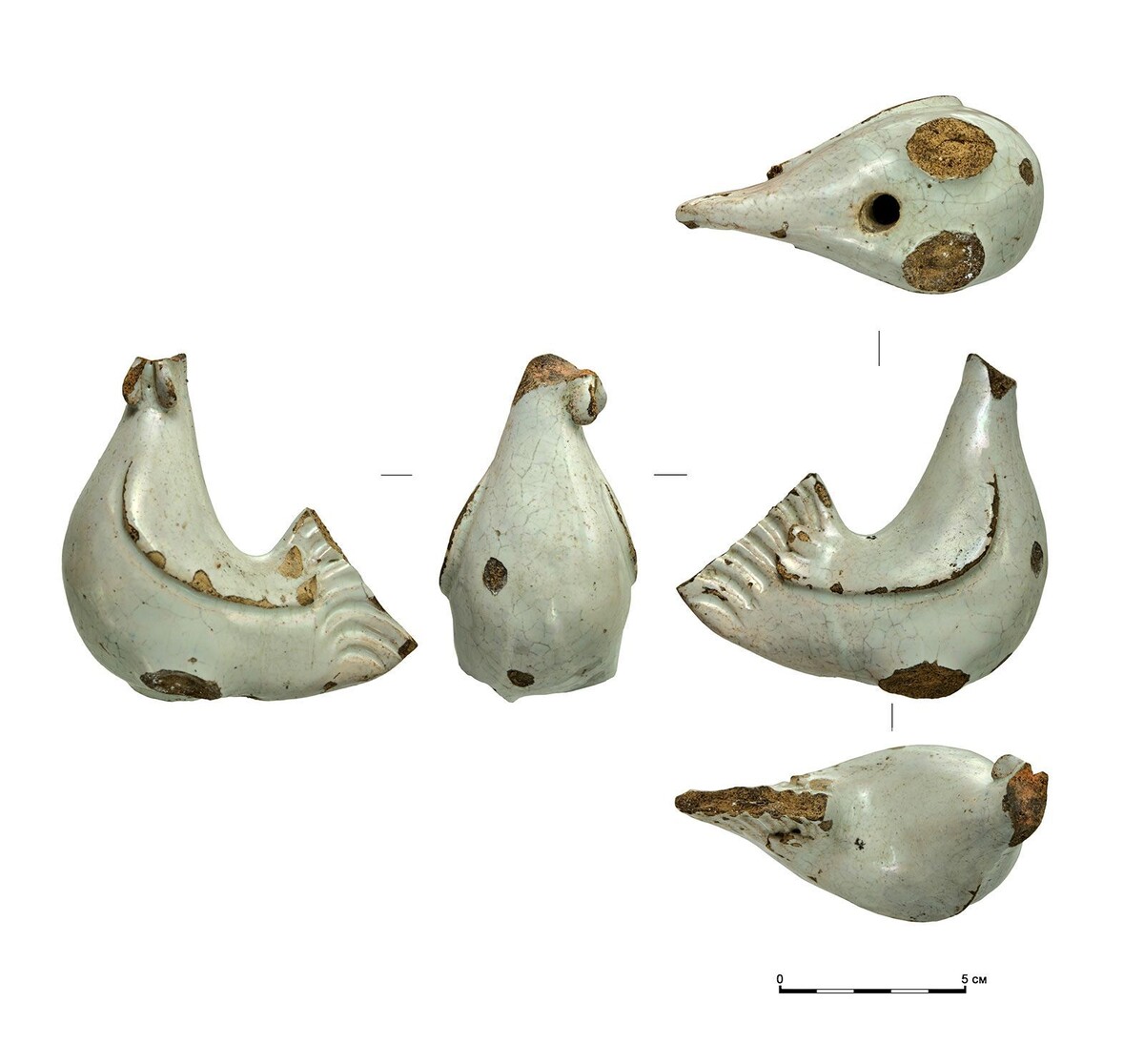 Археологические работы велись на глубине 2,5–4 метров. В этом культурном слое удалось найти артефакты, относящиеся к XVI–XIX векам. Среди них — керамические фигурки курочки, коника, человечка, а также фрагмент игрушки — это голова человечка в кепке с круглыми, будто от удивления, глазами. Керамика была распространенным материалом. Изделия из нее были доступны как зажиточным, так и небогатым горожанам. Однако керамические игрушки довольно хрупкие, поэтому целые фигурки встречаются среди археологических находок не так часто. Найденные предметы свидетельствуют о том, что в XVI–XVIII веках исследуемая городская территория была хорошо освоена. Москвичи жили здесь семьями, вели хозяйство и торговлю. Сейчас старинные игрушки находятся в мастерской и проходят камеральную обработку. После того как их приведут в порядок, коллекция будет передана в музейный фонд. С мая текущего года в Москве начался новый археологический полевой сезон. Сейчас работы ведутся более чем на 200 площадках, в том числ