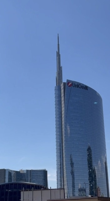 Шпиль башни на фото напоминает своим внешним видом гордость ОАЭ - супер небоскреб Бурдж Халиф (2010 г. постройки). Благодаря этому шпилю башня Torre Unicredit в г. Милане (2011 г. постройки) достигает 231 м и является высочайшим зданием в Италии. Даже как-то неловко перед Италией упоминать тут высоту Бурдж Халифа - 828 м. Но Италия - это все-таки не про небоскребы. Зато непревзойденным по озеленению и экологичности является миланский жилой комплекс «Вертикальный лес». На его террасах было высажены около 900 деревьев, 5000 кустарников. Хотя в Милане температура иногда бывает за пределами +40 по Цельсию, однако, воплотить такой же проект с наружным озеленением в знойном пустынном климате Дубае пока выглядит невозможным. А первым небоскребом в Италии стала башня Пирелли, построенная по заказу главы одноименного концерна. Ее высота 127 м. Сейчас это здание отодвинуто на 13 место в рейтинге самых высокий зданий Италии. Примечательно, что на момент постройки существовал запрет на строит