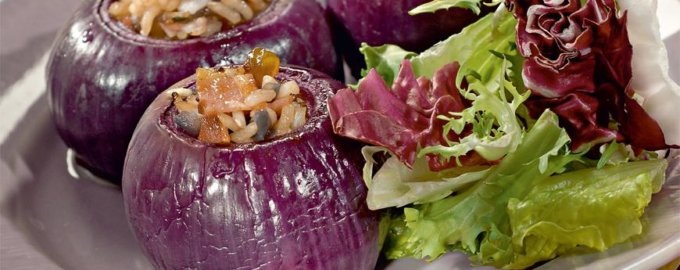 Возможно плов запеченный в луковицах вам незнаком. По арабскому рецепту его готовят из красного риса с чечевицей,изюмом и кедровыми орешками