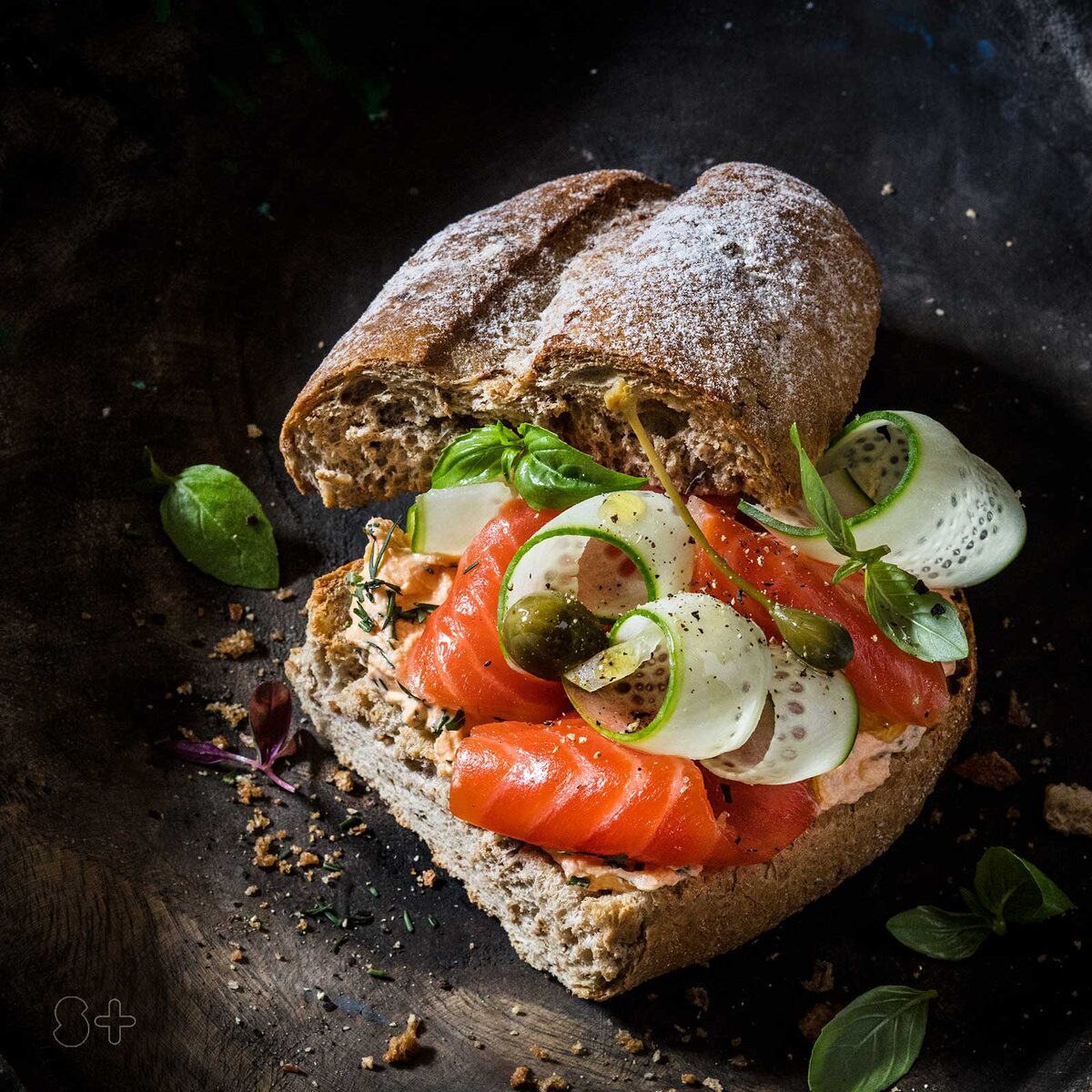 Сэндвич с лососем. Разрежьте хлеб на две части, положите их так, чтобы широкая сторона была направлена наружу. Добавьте ингредиенты, входящие в состав сэндвича, например, крем чиз, ломтики лосося, огурца. Перед подачей можно украсить сэндвич, выложив на него листья салата или зелени, каперсы, дольки лимона или лайма. Это не только сделает блюдо более привлекательным, но и добавит ему свежести и ярких вкусовых оттенков. Обратите внимание, что способ подачи зависит от ваших личных предпочтений. Главное — чтобы вам и вашим гостям было вкусно и комфортно. Разработка концепции, стилистики съемки и реализация проекта студия Славы Позднякова. Фотограф и Фуд-стилист Слава Поздняков. https://slavapozdnyakov.ru #slavapozdnyakov #славапоздняков #foodphotographer #фудфотограф #foodsylist #фудстилист #slavapozdnyakovstudio #студияславыпозднякова #composition #фотосъемкакомпозиций #эстетика #сэндвич #фотосъемкасэндвича #фудстайлингсэндвича #эстетикасэндвича