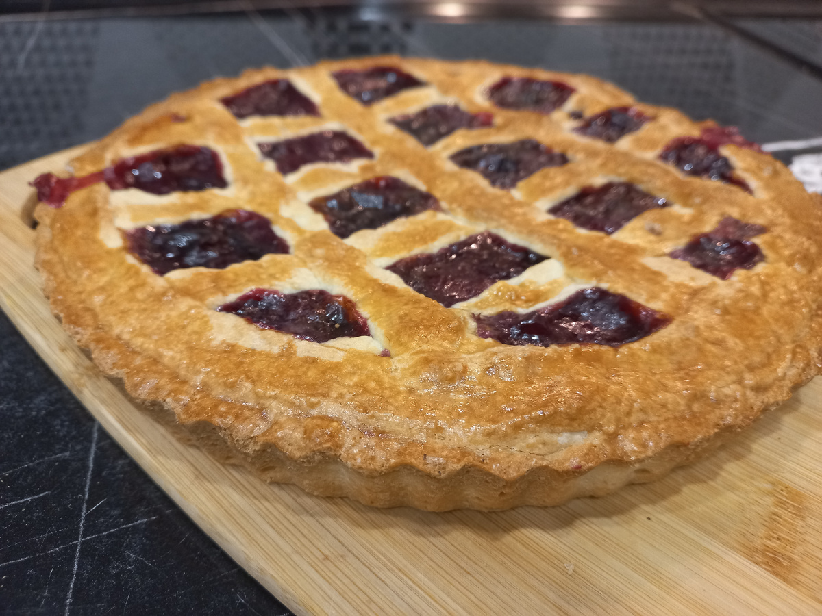 Здравствуйте, подписчики и гости моего канала! Сегодня хочу представить вам рецепт кростаты со сливами. В коллекции моих рецептов уже есть такая выпечка: кростата с вишневой начинкой. Сперва необходимо подготовить начинку. Для нее нам понадобятся: слива - 750 г (после удаления косточки - 625 г); сахар - 150 г; пектин (NH) - 10 г; сок лимона - 1 ст. ложка или 1 г лимонной кислоты. Сливы отделить от косточек и разрезать на 4 части вдоль. Пектин (в сухом виде) тщательно перемешать с сахаром для предотвращения комкования. Сперва в небольшом количестве сахара, а затем добавить ко всей массе сахара и еще раз перемешать. В случае, если используется лимонная кислота, ее смешать с сухими ингредиентами. Смесь сахара и пектина с лимонной кислотой распределить по подготовленным сливам и тщательно перемешать. Поставить на плиту, и при непрерывном помешивании довести до кипения. Если используется сок лимона, добавить его к фруктам, одновременно перемешивая массу. Начинку отставить для остывания. Дл