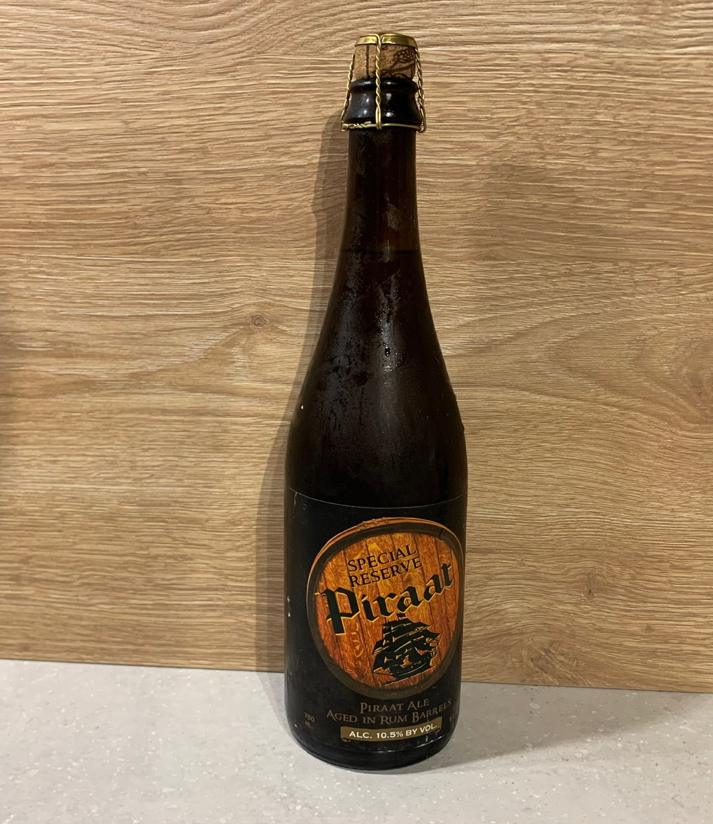 Бельгийское пиво Piraat часто встречается в российских магазинах, но у него есть и другая версия, еще больше "оправдывающая" название "Пират", ее выдерживают в бочках из-под рома, что прекрасно вписывается в пиратскую тематику. Piraat выпускается в нескольких вариантах, в том числе и лимитированном с выдержкой в бочках из-под рома и в бутылке объемом 0,75. В оформлении используется бочка - она практически целиком занимает всю переднюю часть этикетки, кораблик остался, но стал полностью черного цвета. Интересно, что стилистку напитка обозначили как "Piraat Ale", слов "эль" на этикетках этого бренда обычно отсутствует, вместо него употребляется "крепкое бельгийское пиво". Про время выдержки в бочках пивоварня ничего не рассказывает, дата розлива - 01.10.2023, срок хранения - три года, продегустировать эль получилось через 12 месяцев. Пенная шапка у этой версии Piraat среднего размера, держится относительно долго, цвет - янтарный, полупрозрачный, крепость - 10,5%, стандартная для бо