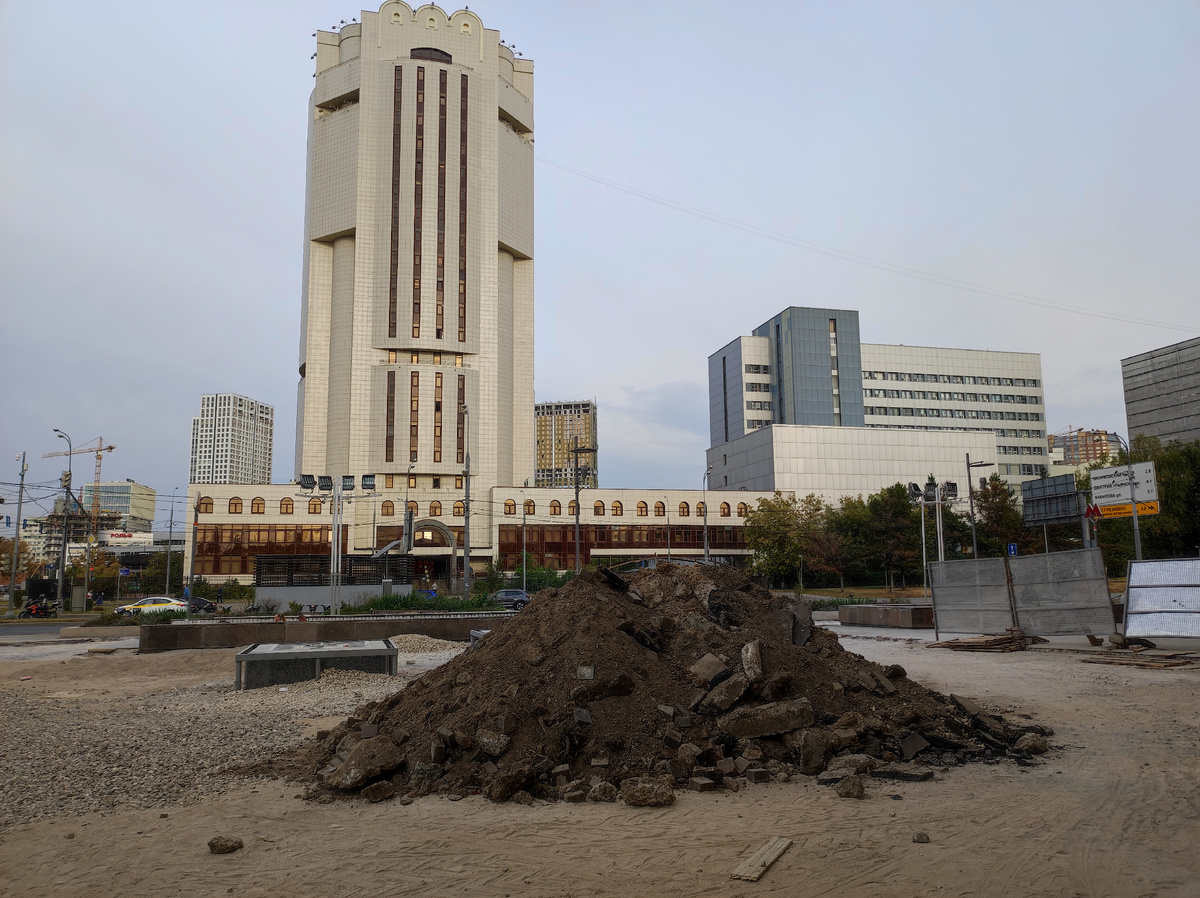 Пейзаж у м. Калужской полон контрастов: с одной стороны высотки, с другой - ямы и буераки. Кто живет в столице, знает, что так у нас почти везде. Знакомая картина, правда? Люблю свой город! Немного непонятный и уму непостижимый, но родной. К сожалению, его любят не все. Даже те, кто должен его любить и заботиться о нём. Хожу этой дорогой каждый день на работу и обратно. Когда перелетела через ямы-канавы у метро, обошла по кустам новый скелет бывшей лестницы, выходишь на липовую аллею. Как она меня спасала в жару! Да и выхлопные газы под деревьями менее заметны. Но месяц назад верхний плодородный слой сняли, сгребли в кучи и бросили, видимо, в целях озеленения и благоустройства. Местами насыпали рыхлый грунт, по нему идти неудобно. А по этой красивой дороге в самый раз! Легкий прыжок через яму и ты чувствуешь себя спортсменом! А преодолел полосу препятствий - и вообще, день начался удачно, есть чем гордиться. Вот только с колясочками здесь не походишь. Да и не надо! Дороги ведь д