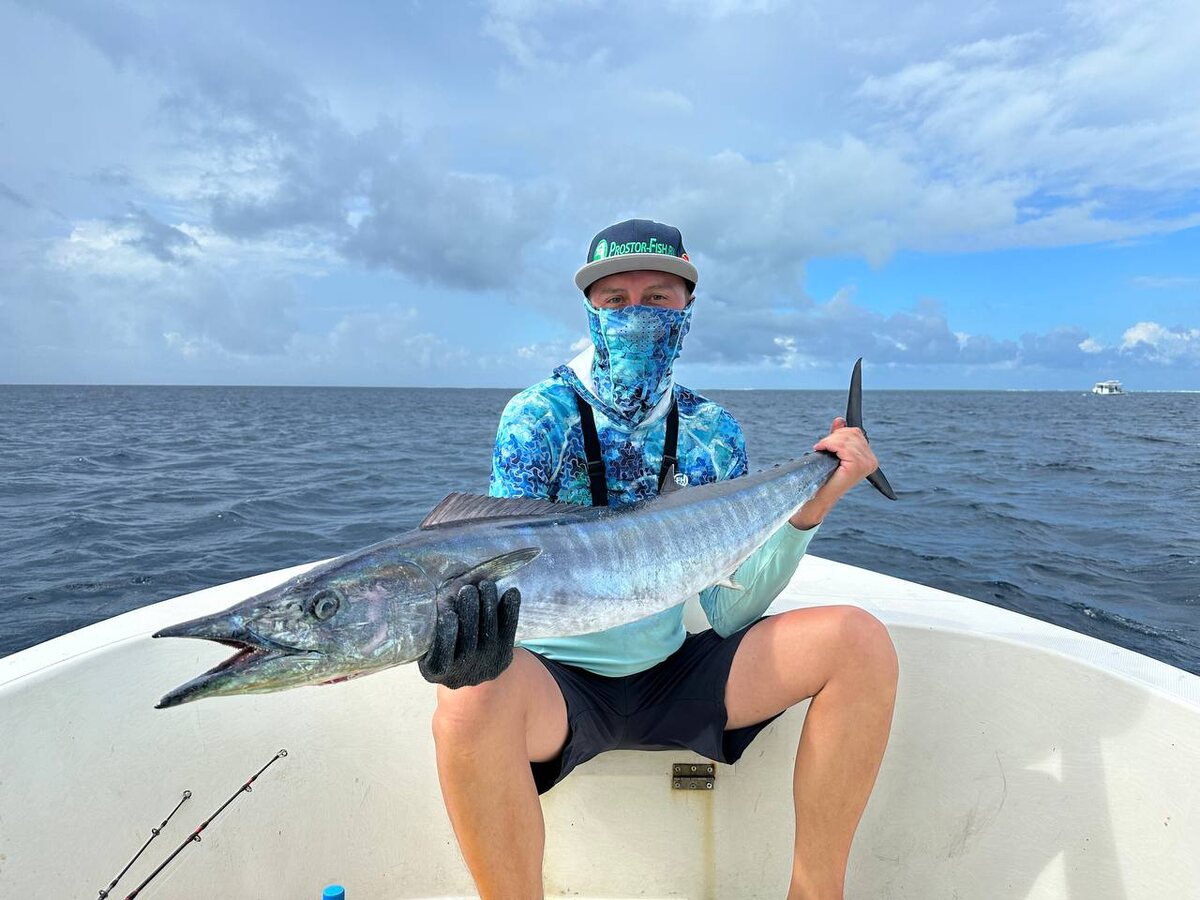 Wahoo – колючая пеламида, она же «пето», «оаху», Acanthocybium solandri. Скоростной болид – третья по скорости среди морских хищников в тропических и субтропических водах, может развивать скорость до 80 км/ч. Держится всегда ближе к поверхности воды, редко опускаясь ниже 12 метров. Находится в постоянном движении, поэтому вынуждена много есть. Основной рацион: мелкая рыба и головоногие. Предпочитает охотиться в одиночку, изредка ходит в тандеме. Яростно нападет на жертву из глубины заставая её врасплох. Если промахивается, то повторяет свой маневр. Поклевки этой злодейки в стиле: «Отдай спиннинг». На вываживании сопротивляется до последнего. Поднятая на борт, представляет опасность, пытается укусить всё, что находится рядом. Тело тонкое, сильно вытянутое, веретенообразное. Расцветка отливает «металликом», спина и верхняя часть голубовато-зеленого цвета. По бокам много темных полос, которые исчезают сразу после гибели рыбы. Считается «Premium» деликатесом в любом виде. Рекордная Wa