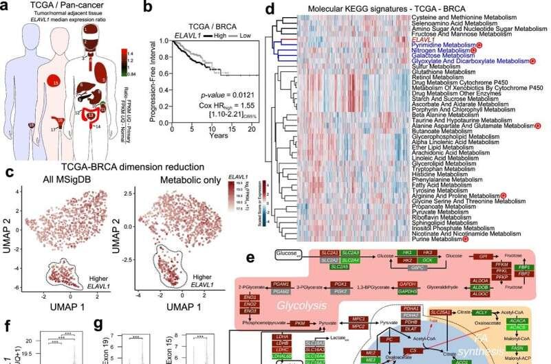 Исследование, проведенное бразильскими учеными и опубликованное в статье, опубликованной в журнале Nature Communications, предполагает, что одновременное воздействие на фермент глутаминазу и белок HuR, оба из которых необходимы для прогрессирования опухоли, может быть эффективным при лечении рака молочной железы. Метаболические потребности опухолевых клеток связаны с высоким уровнем потребления глютамина для производства энергии. По мнению исследователей, первым шагом является превращение глутамина в глутамат, катализируемое глутаминазой, которая имеет три изоформы (GAC, KGA и LGA) с разным отношением к прогрессированию опухоли и является хорошей мишенью для лечения. «Глютаминаза важна, потому что она превращает глутамин в соединения, которые питают цикл производства энергии и поступления в клетки. Это делает ее незаменимой для раковых клеток, у которых очень активный метаболизм, для поддержания быстрого роста», — сказал Дуглас Адамоски (Douglas Adamoski), первый автор статьи. Таким об