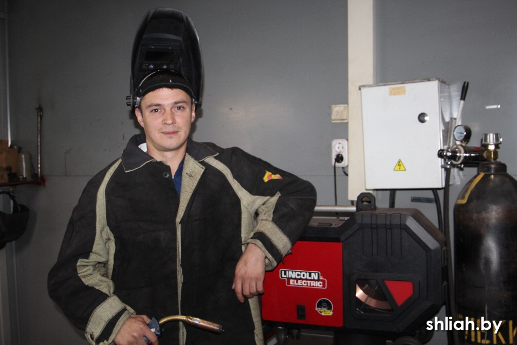 Стаж работы Дениса ЧУМАКА на Сморгонском агрегатном заводе – 7 лет. За эти годы молодой мужчина зарекомендовал себя как ответственный и добросовестный сотрудник. Он был удостоен почетной грамоты и благодарности завода. В этом году фотопортрет Дениса Чумака заносится на Доску почета предприятия. Денис Валерьевич родом из д. Гаути. После окончания 9 классов Сольской средней школы юноша поступил в Сморгонский государственный профессиональный политехнический лицей, где получил специальность каменщика-электросварщика. Молодой специалист устроился в СМТ №41. В составе строительной бригады он сначала трудился каменщиком на Белорусской АЭС, позже – сварщиком. Денис считает большой удачей и везением, что оказался на агрегатном заводе. Когда их бригада строила транспортный участок на САЗ, Денис Чумак поинтересовался в отделе кадров, требуются ли на предприятие сварщики. Спустя неделю молодой человек уже работал в цеху завода. Денис Валерьевич занимается сваркой деталей к мини-тракторам и мотобло