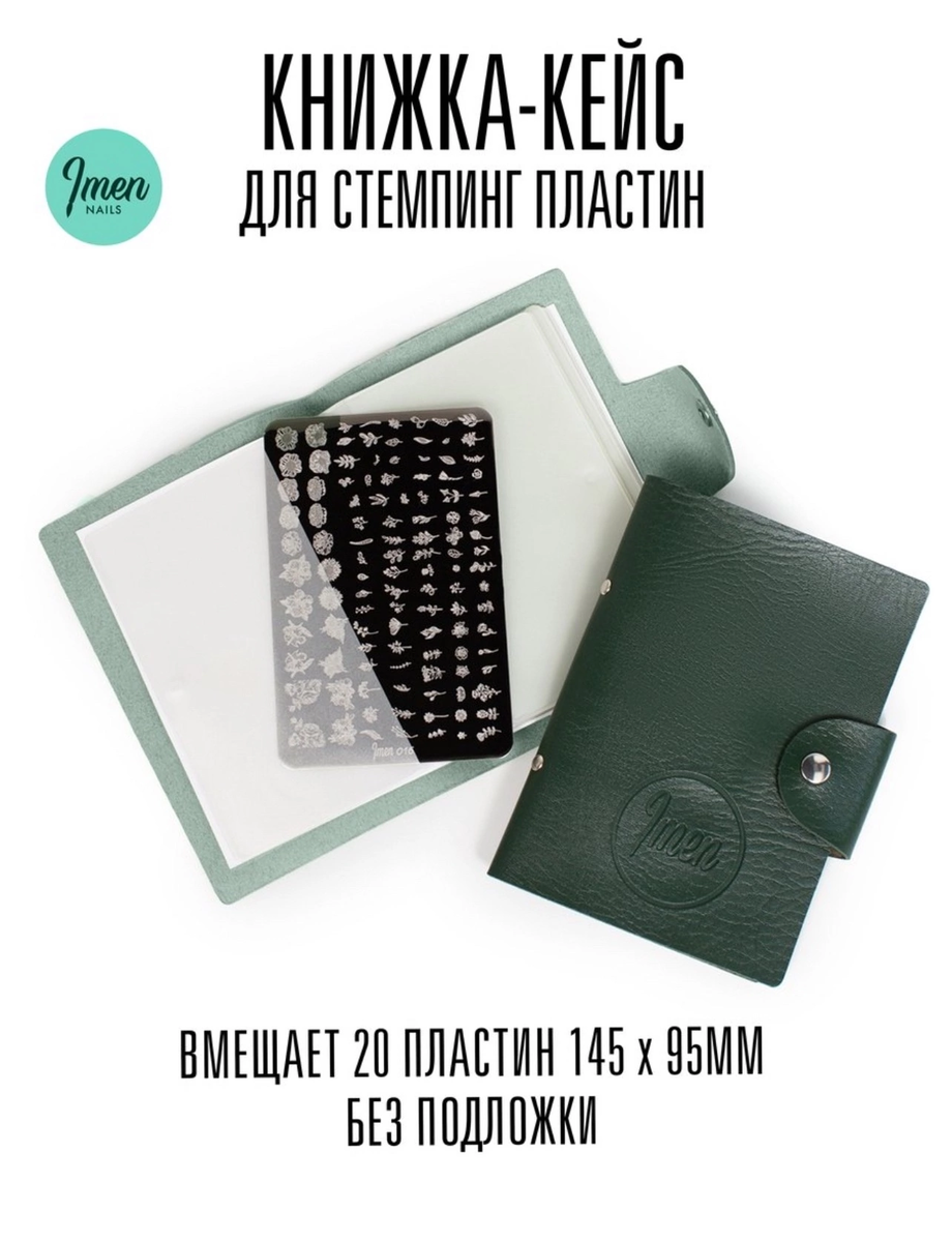 Для хранения пластин для стемпинга у нас в ассортименте есть вот такая стильная книжка-кейс Представлена в двух цветах: -темно зелёный -оливковый Сделана из мягкой эко-кожи, вмещает 20 пластин размером 145*95м Цена 450₽ Купить можно тут⬇️ Онлайн магазин www.imennails.ru