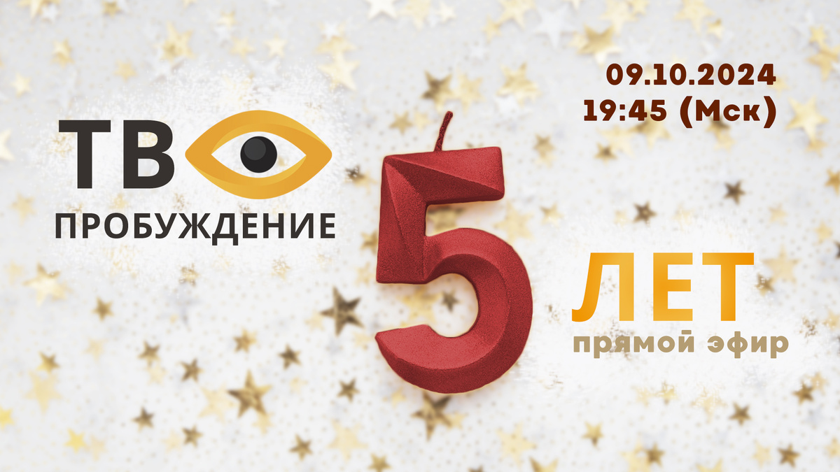Дорогие друзья! 9 октября в 19.45 приглашаем вас на прямой эфир, посвященный пятилетию нашего канала ТВ Пробуждение 🎉 Мы не только подведем итоги, но и расскажем о том, над чем работаем сейчас и какие у нас дальнейшие планы. Среди сюжетов, которые мы планируем затронуть: - Современные направления в регрессологии (и чем они отличаются), - Книга "Титана", - Клуб Монро, - Школа регрессологов Святослава Игнатьева - и другие направления нашей деятельности. И, разумеется, ответим на вопросы наших подписчиков. Присоединяйтесь! Будет, как всегда, интересно! Эфир состоится на нашем канале ТВ Пробуждение и на других наших площадках. Следите за анонсом! Мы в социальных сетях ВКонтакте https://vk.com/center.probujdenie