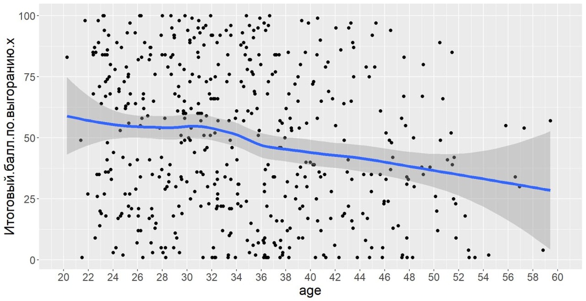 Выгорание снижается с возрастом? Вы проводили у себя в компании опросы выгорания сотрудников? На диаграмме выше – данные одной компании, где я анализировал результаты опросника выгорания. По оси X – возраст сотрудников, по оси Y – балы по опроснику, чем выше бал, тем выше уровень выгорания. Для сравнения – ниже вторая диаграмма, западное исследование, как выгорание связано с возрастом – и та же самая тенденция. Я показываю только одну диаграмму одного исследования. Таких исследований больше, и везде тренд нисходящий - выгорание падает с возрастом. Как вам эти результаты? Это нормально, что выгорание пропадает с возрастом? Выходит, что выгорание – болезнь молодых? Или болезнь поколения? Или все-таки, на ваш взгляд, эти результаты – особенности опросников и настоящее выгорание должно накапливаться с возрастом? ПРИГЛАШАЮ ОТСЛЕЖИВАТЬ НАС В ТЕЛЕГРАМ