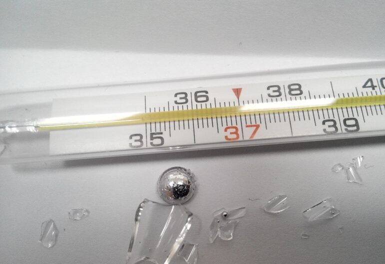 Не стоит паниковать! Разбившийся термометр — это неприятность, но при правильных действиях можно быстро, но безопасно убрать разлившуюся ртуть. Ртуть может попасть в организм через дыхательные пути в виде ядовитых паров. В таком случае для избежания отравления, старайтесь не дышать над ней, закрывайте лицо респиратором или марлевой повязкой. Если градусник разбился, первым делом откройте окно, но не устраивайте сквозняк — это только разнесет пары по дому. Особенно если разбить градусник вблизи камина или любых других обогревательных приборов. Ртуть начинает активно испаряться уже при температуре 18 C. Однако стоит помнить, что сегодня в продаже гораздо чаще встречаются градусники, содержащие вместо ртути галистан (сплав галлия, индия и олова). Такой градусник если и может принести вред человеку, то только острыми осколками стекла. Под микроскопом ртуть выглядит как блестящие капли, напоминающие мелкие зеркальца, отражающие свет. Эти капли легко различить, но при сборе нужно быть остор