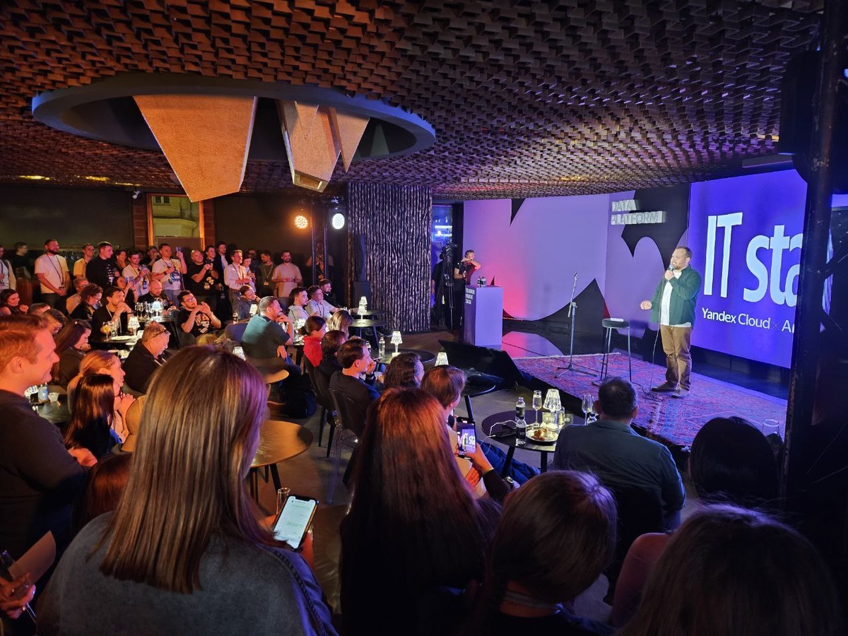 На этом фото вы наблюдаете выступление в стендапе православного батюшки, который работает IT-шником… Во времена настали! Это было под занавес одной из крупнейших конференций Yandex Scale, которую я посетил на прошлой неделе. Расскажу, как все прошло. Яндекс раз в год собирает мегаконфу для разработчиков. В прошлом году проходила в Крокусе, от которого после мартовского теракта остались руины. Поэтому на этот раз программистов пригласили в… МХАТ имени Горького. Я давно мечтал побывать в этом театре и никогда не думал, что это будет рабочая конференция. Приглашены были тысячи сотрудников как самого Яндекса, так и многочисленных партнеров, среди которых был и я. Очередь на вход растянулась на несколько сотен метров по Тверскому бульвару. А еще говорят, все разработчики из России сбежали… Среди участников было процентов 90% мужчин. Но и девушек в этой сфере становится все больше. Судя по шмоткам топов, в этом году в тренде будет что-то черное и мешковатое. Яндекс умеет нагнать пафоса. Посл
