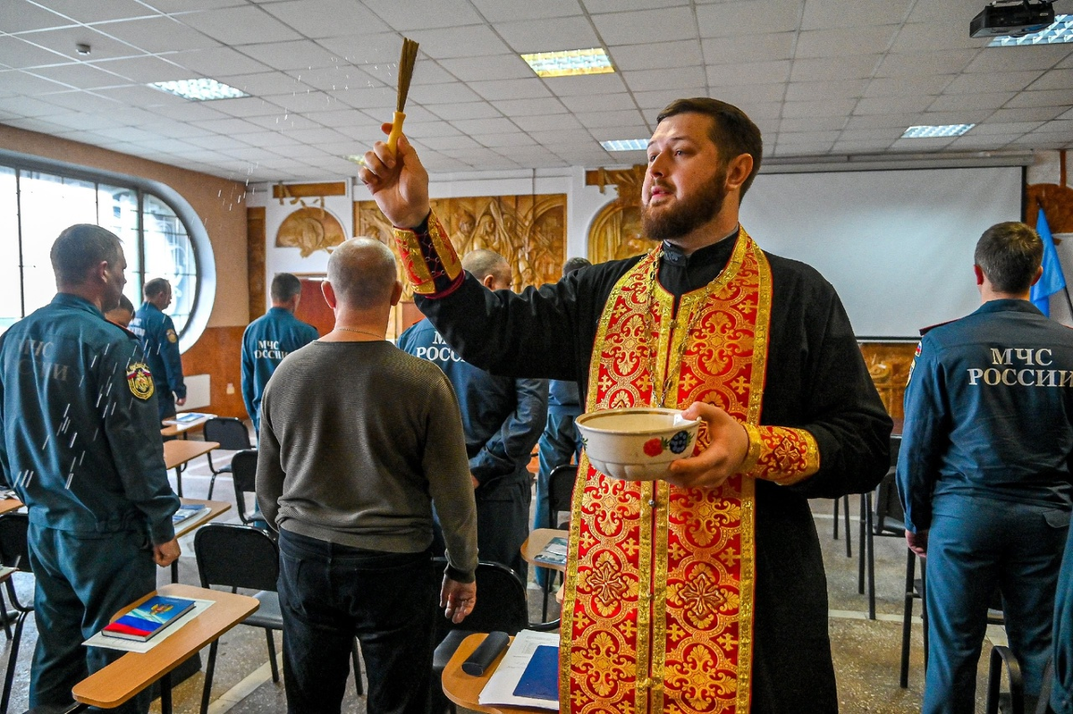 26 сентября 2024 года в актовом зале 11 пожарно-спасательного отряда ФПС ГПС Главного управления МЧС России по Кемеровской области состоялся молебен в честь иконы Божией Матери «Неопалимая Купина».