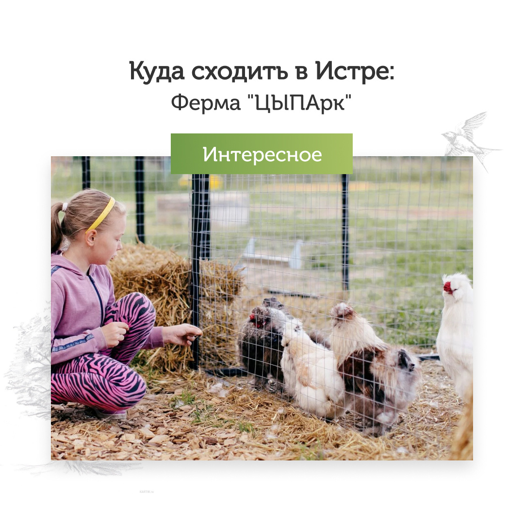 Истра - прекрасное место для отдыха с детьми, а "ЦЫПАрк" - настоящий рай для всей семьи! Здесь найдется занятие по душе каждому: от маленьких посетителей до взрослых. "ЦЫПАрк" расположился в экологически чистом районе Подмосковья с потрясающими видами на березовую рощу и речку. 🏞️ Встретите милых домашних животных, оленей и даже страусов! 🐦 Игры и активности на ферме - это не только веселье, но и возможность для малышей развить важные навыки: любовь к природе, выносливость, ловкость и координацию. 💪 Что же вас ждет в "ЦЫПАрке" в любое время года? 🔸Посещение фермы с оленями, курочками, страусами и козлятами 🔸Фотосессия с оленями на экскурсии по зооферме 🔸Прохождение всех этапов веревочного парка 🔸Катание с тюбинговой горки или обучение катанию на коньках 🔸Завоевание вершины скалодрома 🔸Игры в пинг-понг, шахматы, энгри-бёрдс, кёрлинг, баскетбол, волейбол и футбол, а также в пляжный волейбол 🔸Плавание в бассейне и отдых на шезлонгах (летом) 🔸Вкусный обед в семейном кафе или на