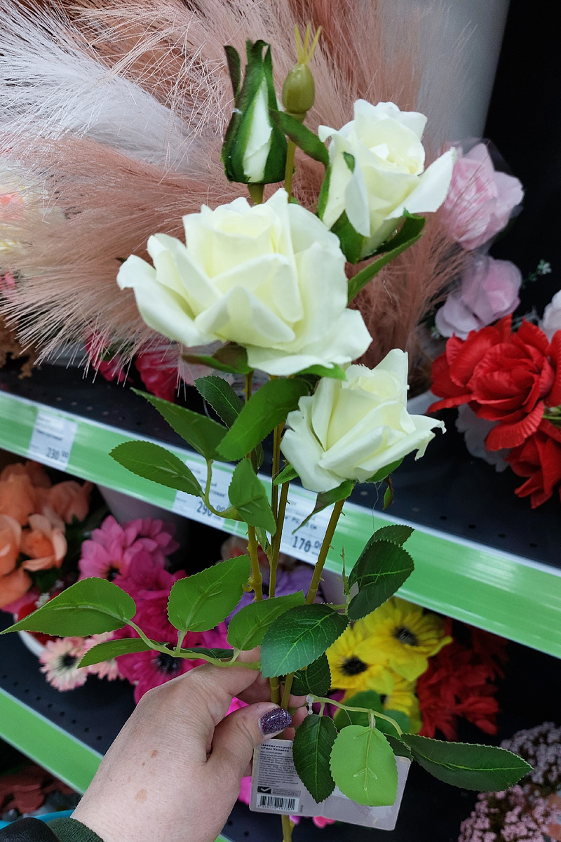 Симпатичный цветок искусственный «Роза Ханако», смотрится реалистично, длина 65 см, привозили не раз и отзывы положительные, многим нравится. Цена 170 рублей. Три цвета в наличии.