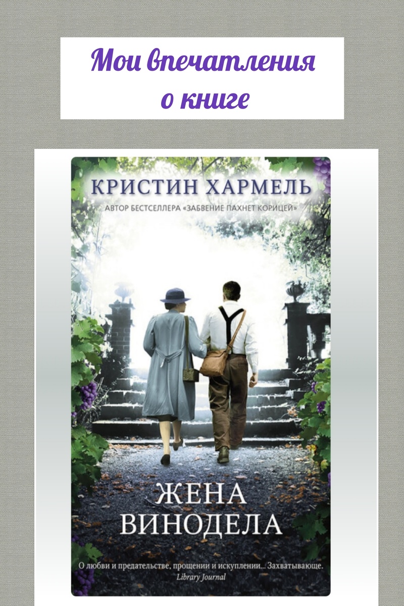 Главные герои этой истории - супружеская пара виноделов. Они живут во Франции, занимаются изготовленим вина, люди достаточно обеспеченные, но труд их тяжел. Молодая жена довольно быстро понимает, что не о такой жизни она мечтала. Тяжёлый труд на виноградниках с немногословным мужем разочаровывает её. Нашим виноделам помогает ещё одна супружеская пара, живут в домике рядом. Происходят эти события в 1938 году. Привычную жизнь виноделов нарушает немецкая оккупация. Оккупанты грубо вторгаются в повседневную жизнь наших героев, безобразно грабят винные погреба, урожая и запугивая виноделов, особенно - женщин. Как поведут себя наши герои в резко изменившихся жизненных условиях? Какую цену можно заплатить за супружеское предательство в военное время? Какой выбор сделает каждый из героев? От книги не оторваться, безумно интересный сюжет. Есть также сюжетная линия настоящего времени, где страдающую от депрессии после развода женщину любящая бабушка увозит в Париж, где внучка узнает о всех та