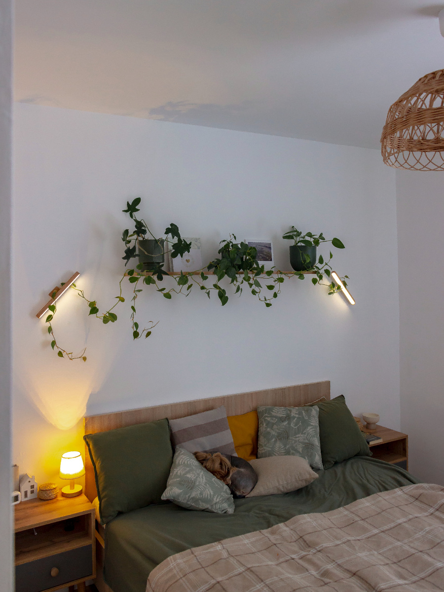 Ранее у нас была маленькая квартирка-студия, всего 28 квадратных метров. И когда появилась возможность к расширению, то одним из условий было - отдельная комната, в которой будет только кровать и много зелени. Ремонт делаем своими руками, неспешно, по возможностям. Но я уже с большой уверенностью могу сказать, что получается именно то, о чём мечталось! Светло и уютно. Да, на стенах нет ещё обоев, только белая краска, но это не мешает нам ощущать себя здесь Дома. В спаленке нет телевизора и громоздких шкафов, только зеркало и комод. Потолок выровняли и покрасили. И вот что у нас вышло. Это ещё не завершенный вариант, но уже очень нравится.