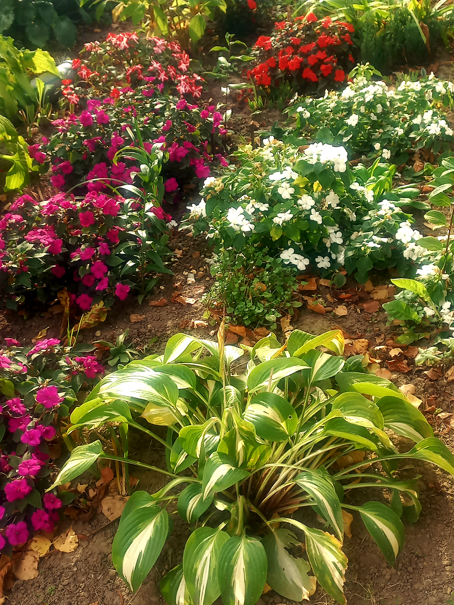 Не цветок, а универсал! Ещё бы: Из требований только хорошо дренированная увлажнённая почва. Как же называется это садовое чудо? Импатиенс (бальзамин) Валлера Имара F1! Его гибриды с окрасками Вайолет, Оранж, Оранж Стар и Вайт я выращивала в цветнике рядом с многолетниками, но поняла, что этот цветок идеально подойдёт для окантовки более крупных растений. Так же он будет замечательно смотреться в бордюрах, контейнерах и оконных ящиках как монохромно, так и в миксах. А ещё бальзамины и привлекают опылителей, так необходимых для получения хорошего урожая, поэтому их можно разместить на границе с огородом и даже, если позволяет место, среди гряд с овощами. Вынужденная пересадка в середине сезона показала, что лучше всего импатиенсы Валлера Имара F1чувствуют себя в тени или полутени, но при этом отлично переносят утреннее солнце. Выращивание этого вида бальзаминов не отличается сложностью в отличие от некоторых его других разновидностей. Семена сеют в лёгкий умеренно увлажнённых грун