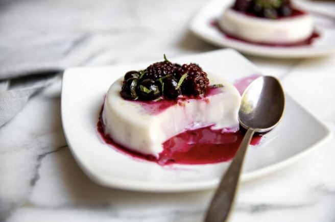 Сливочная панна-котта из кокосового молока с жареными ягодами