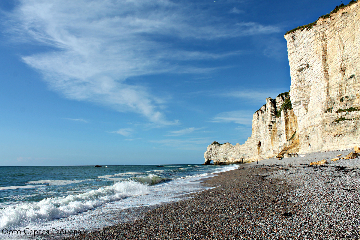 "Сочиняй мечты, ведь всё, что существует на свете, было когда-то мечтой" - Карл Сэндберг, американский поэт. В Нормандии, на самом побережье пролива Ла-Манш, есть небольшой городок под названием Этрета. Он известен своими удивительными по красоте береговыми пейзажами. Природа не поскупилась и щедро одарила Этрету. Столетиями морские волны, солнце и ветер, как заправские скульпторы трудились над её берегами, создавая из известнякового побережья картину, достойную восхищения. Может поэтому многочисленные островки и утёсы Этреты имеют собственные имена. Здесь есть "Слон, пьющий воду", "Игла" и "Парус". А французский писатель XIX столетия Альфонс Карр сказал об этом месте: «Если бы мне нужно было показать другу море, который никогда его не видел, я бы привез его в Этрету».