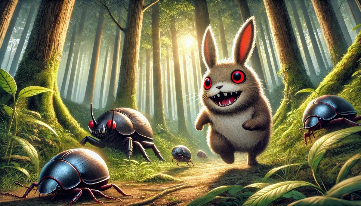 Глава 3. Новые открытия Лес вокруг нас казался живым существом, дышащим в унисон с нашими шагами. Катя шла рядом, внимательно осматривая окрестности. Ее глаза блестели то ли от волнения, то ли от отражения солнечных лучей, пробивающихся сквозь листву. — Алексей, тебе не кажется, что здесь что-то не так? — спросила она, останавливаясь у странного дерева с искривленными ветвями. — В каком смысле? — я прислушался, но слышал только шелест листьев и пение далеких птиц. — Слишком спокойно, — она нахмурилась. — Как будто что-то наблюдает за нами. Не успела она договорить, как из кустов выскочило существо, напоминающее кролика, но с острыми зубами и красными глазами. Оно издавало неприятный шипящий звук. — Что за... — начал я, но существо уже бросилось на нас. Я поднял копье, стараясь удержать его на расстоянии. Катя отступила на шаг, пытаясь вспомнить хотя бы одно заклинание, кроме своего магического снаряда. — Держись! — крикнул я, нанося удар. Существо исчезло в облаке искр. — Одно