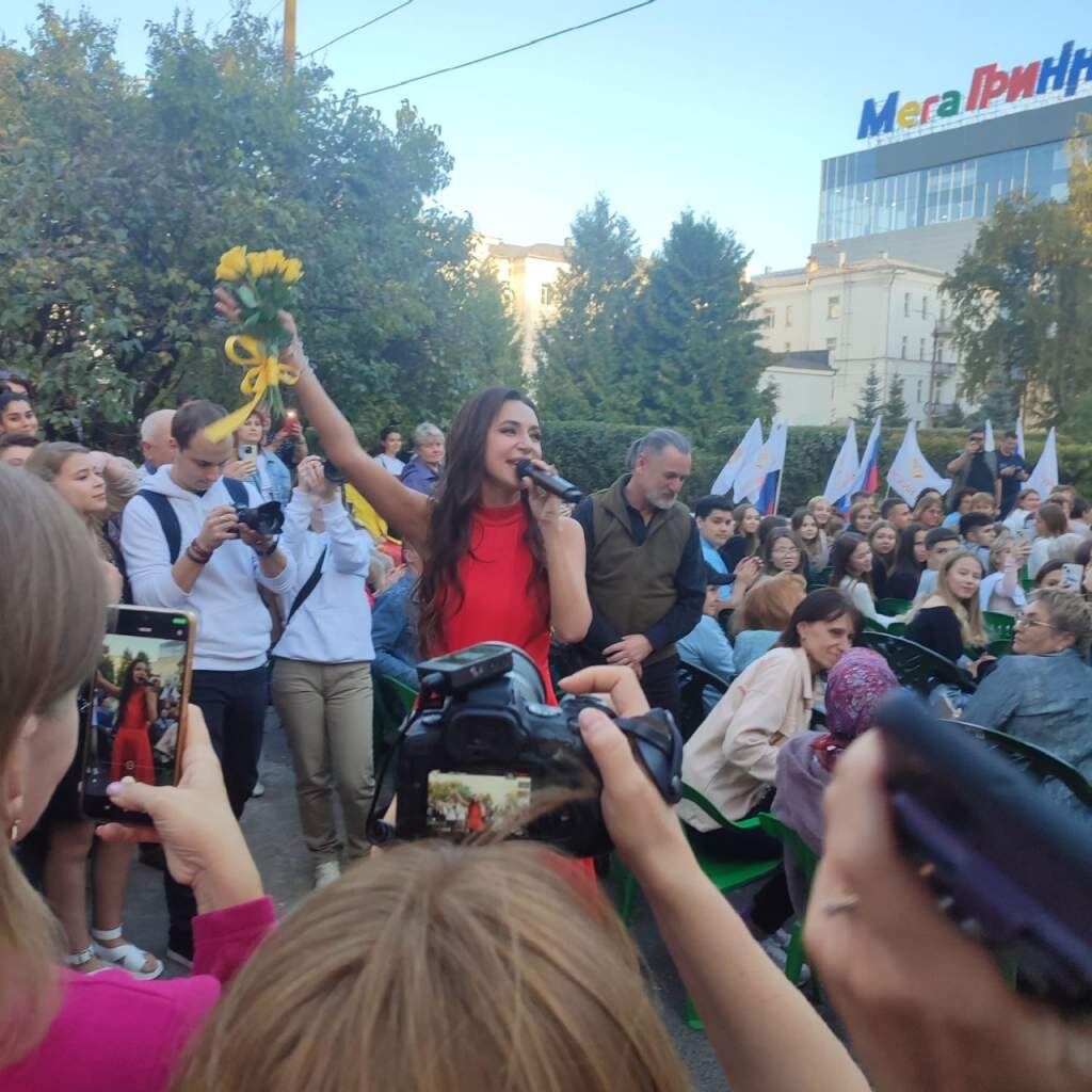 Сегодня вечером известная певица Зара спела в крупнейшем ПВР областного центра. Для переселенцев она исполнила несколько композиций, в том числе и гимн России. Выступление прервала сирена, после небольшой паузы оно продолжилось. Ранее для курян выступили Григорий Лепс и SHAMAN.