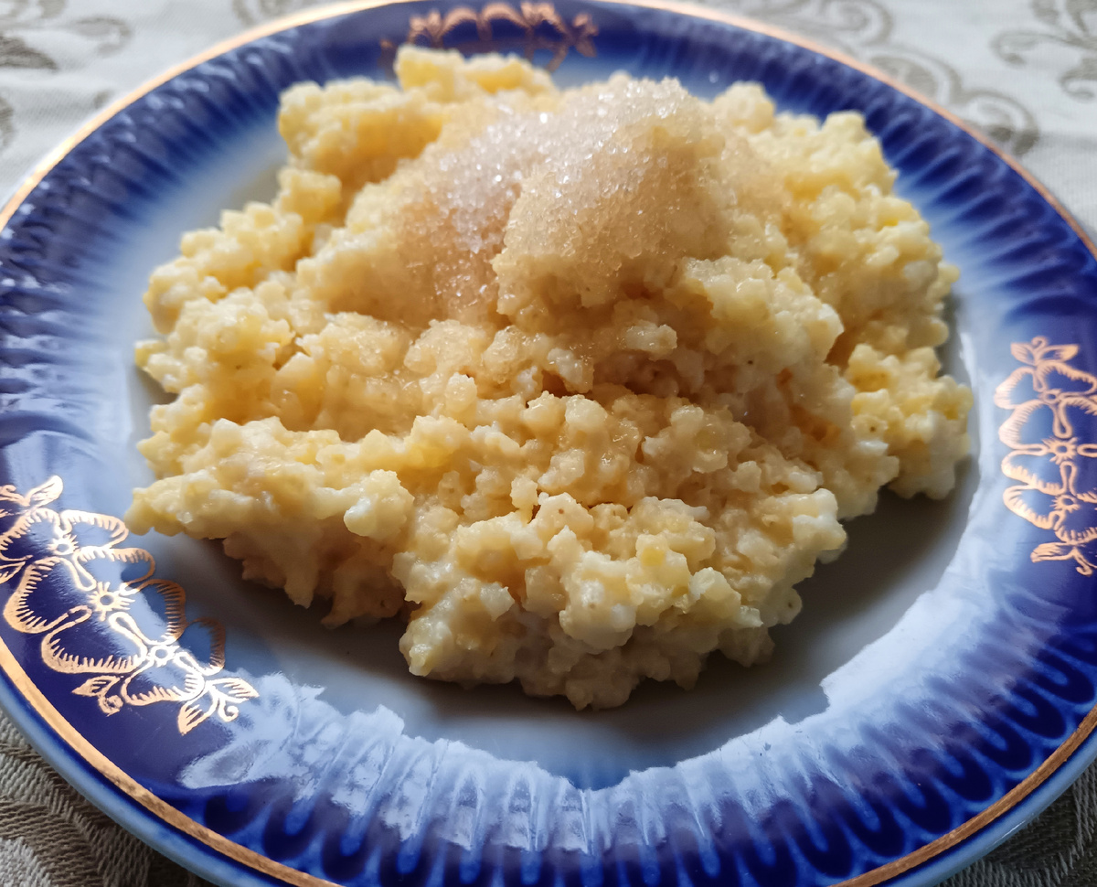 Не оказалось в холодильнике привычных уже продуктов: яиц, сыра, масла сливочного, хлеба и с утра сразу задачка, что же приготовить на завтрак? Это мы за лето от каш отвыкли, очень давно их не варили и крупу даже не покупали, не идет ей на пользу долгое хранение. Поэтому в закромах нашлось только пшено, и то изначально цыпленку предназначалось, но вот самим пригодилось в итоге. 😀