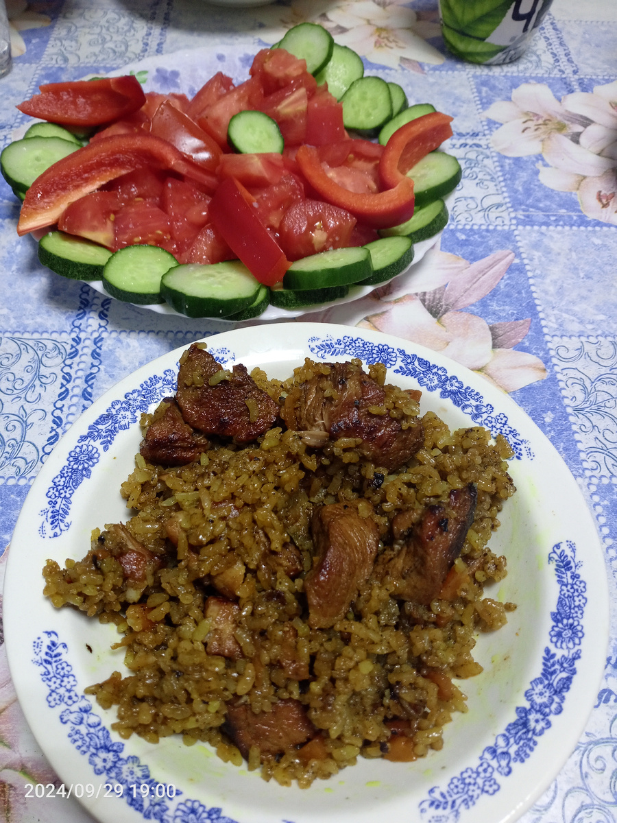 Решили отметить первый день моего отпуска. Сварили плов в казане, на природе. Вот почему-то еда приготовленная на костре всегда вкуснее, чем с плиты!