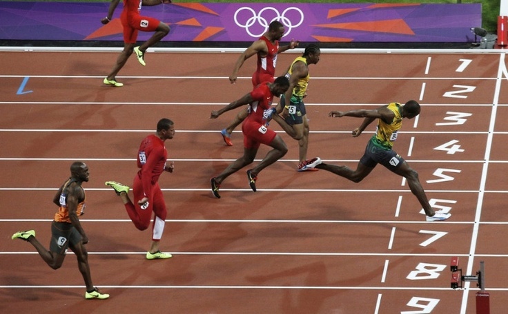 Приступим!!! 10.Неста Картер (Ямайка) — 9,78 секунды на дистанции 100 м. 9.Фердинанд Оманьяла (Нигерия) — 9,77 секунды на дистанции 100 м. 8.Трейвон Бромелл (США) — 9,76 секунды на дистанции 100 м. 7.Фред Керли (США) — 9,76 секунды на дистанции 100 м. 6.Кристиан Коулман (США) — 9,76 секунды на дистанции 100 м. 5. Джастин Гэтлин (США) — 9,74 секунды на дистанции 100 м. 4.Асафа Пауэлл (Ямайка) — 9,72 секунды на дистанции 100 м. А теперь тройка наибыстрейших 😎: 3.Йохан Блейк (Ямайка) — 9,69 секунды на дистанции 100 м. 2.Тайсон Гэй (США) — 9,69 секунды на дистанции 100 м. 1.Усэйн Болт (Ямайка) — 9,58 секунды на дистанции 100 м. Я думаю не только я заметил что в этом топе много спортсменов из Ямайки. Я думаю вам интересно почему? Если верить моим источникам то этому есть 2 объяснения: 1. У людей из этой страны, в частности у Усейна Болта, особенное строение организма. Они генетически предрасположены к данному виду деятельности. 2. В Ямайке развивают этот вид спорта,так как он очень популя