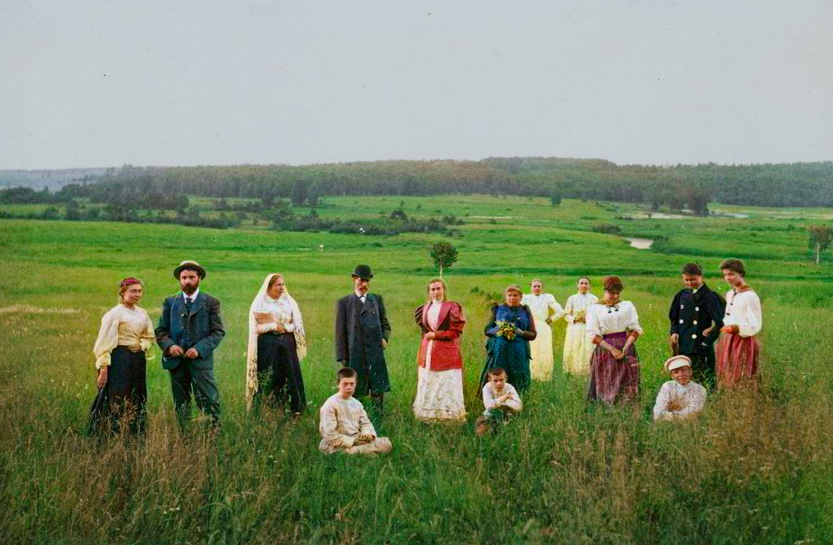 Фотография семьи Гнесиных на поляне в Поливаново. Подольский уезд, 1893-1897 год.