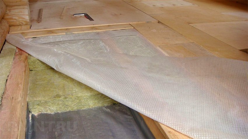 Если прогрев подпола циркуляцией комнатного воздуха не планируется, верхний ряд лаг укрывается синтетической мешковиной, поддерживаемой набитыми на нижний ряд планками. В ячейки лаг пола может быть заложен утеплитель, в том числе и сыпучий. При необходимости увеличить его толщину набивается контробрешётка.