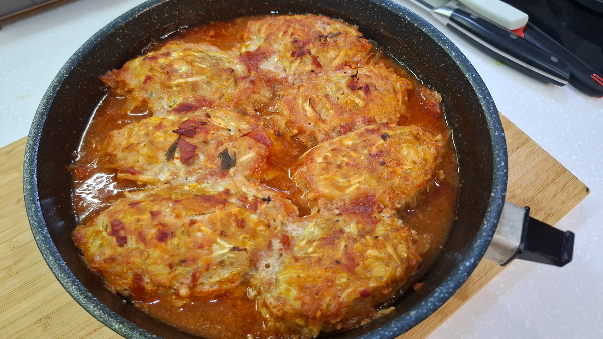Заливаем получившимся томатным соусом наши ленивые голубцы.